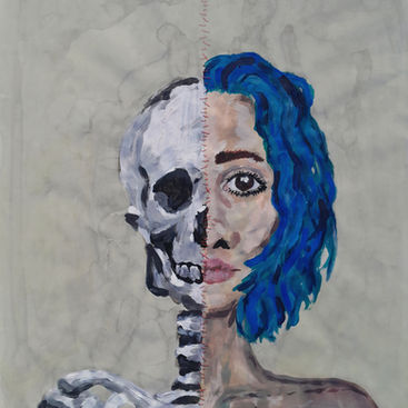 Réalisée avec de la peinture acrylique, de l'encre de Chine et du fil sur le thème « l'Asymétrie »